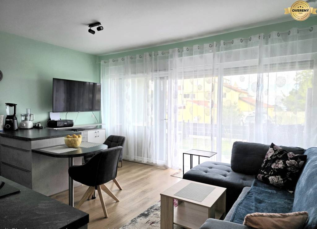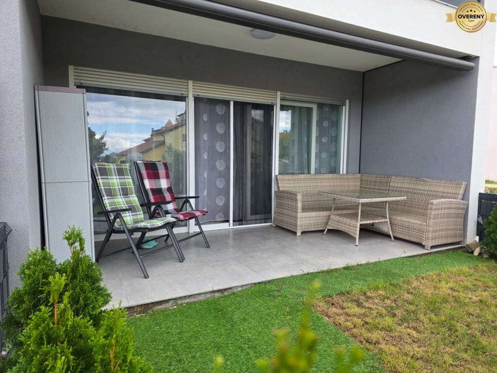 The apartment is located on the ground floor of the house. Its area is 49.71 m2 + terrace 9.90 m2 and garden 15 m2. The apartment includes one parking space.