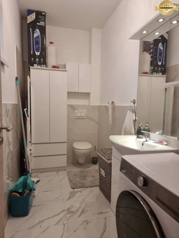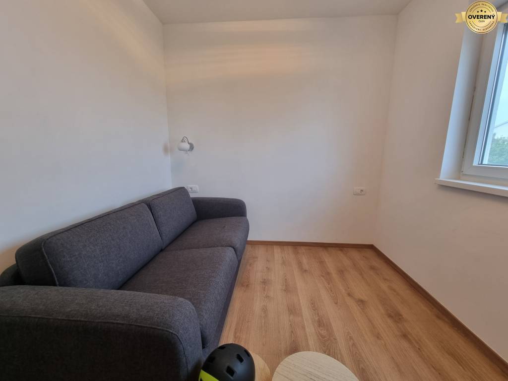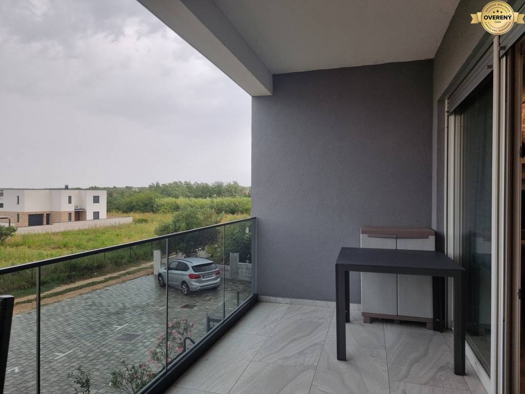 The apartment has an area of 83 m2 + 2x loggias, each with an area of 9.90 m2. The apartment has a garden with an area of 20 m2, in which there is a bicycle shed and one parking space.
